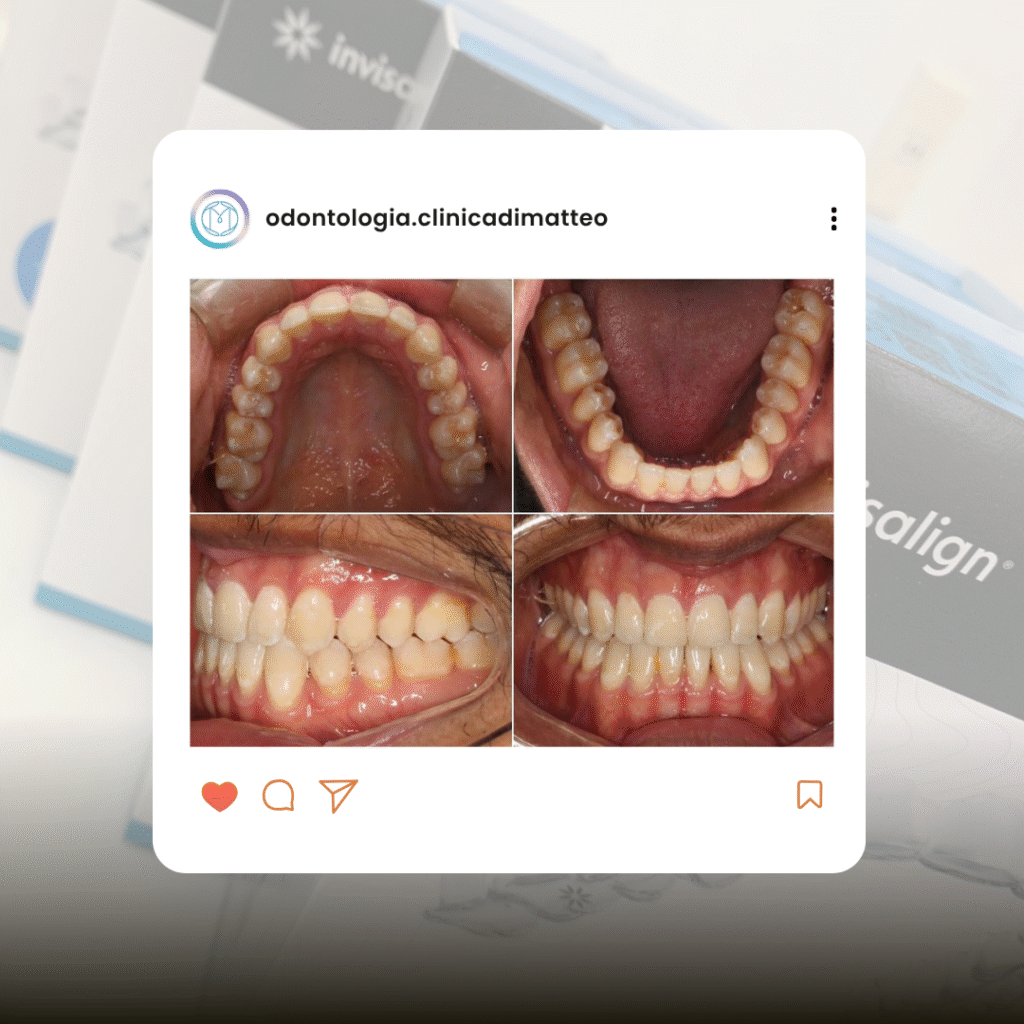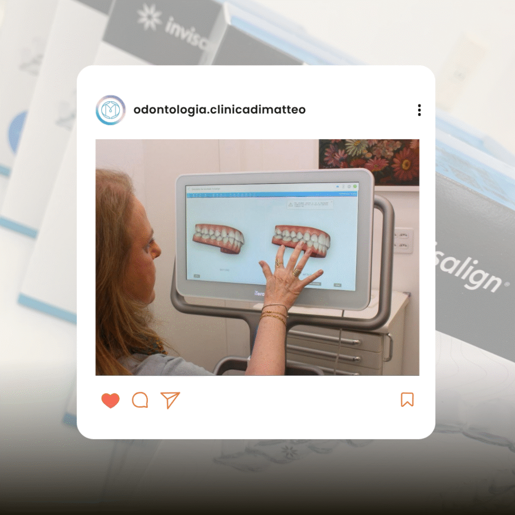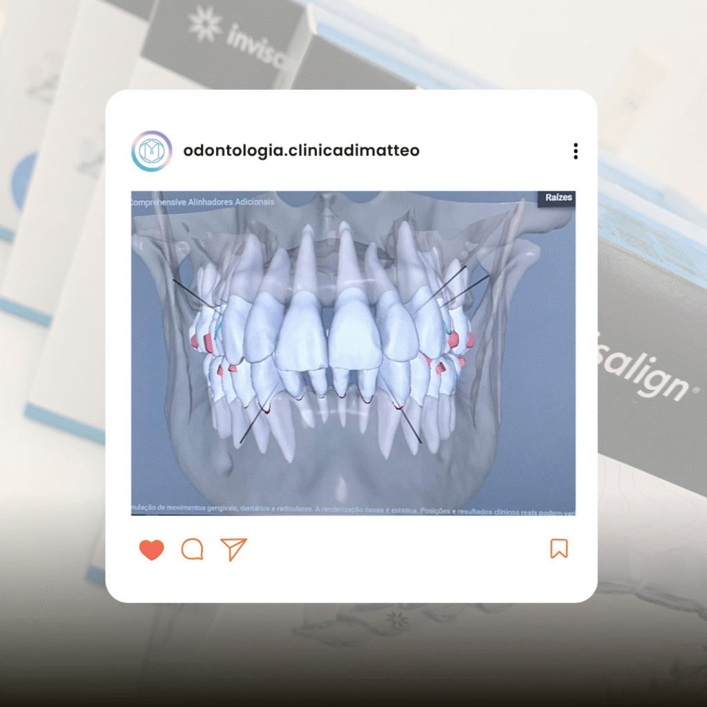 O tratamento Invisalign consiste na utilização de uma série de alinhadores transparentes removíveis que corrigem gradualmente a posição dos dentes.